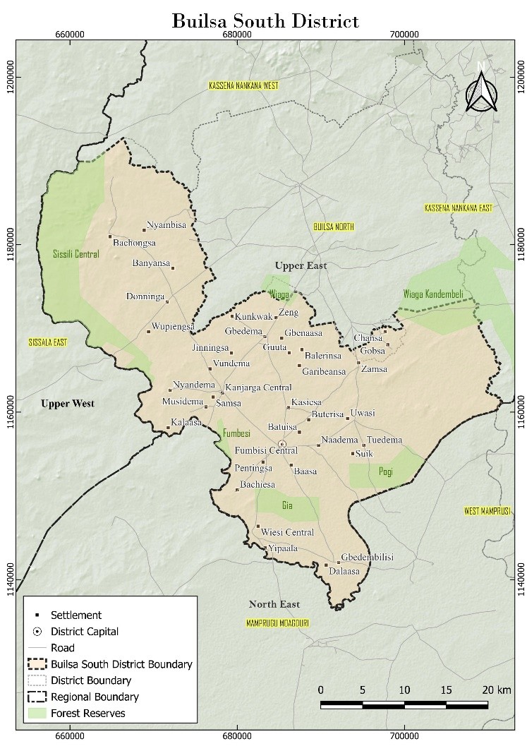 Established in 2012, the Builsa South District is located in the southern part of the Upper East Region, with Fumbisi as its capital. The district covers 1,260 square kilometres of fertile land that supports vibrant agricultural activity and a rich cultural heritage.